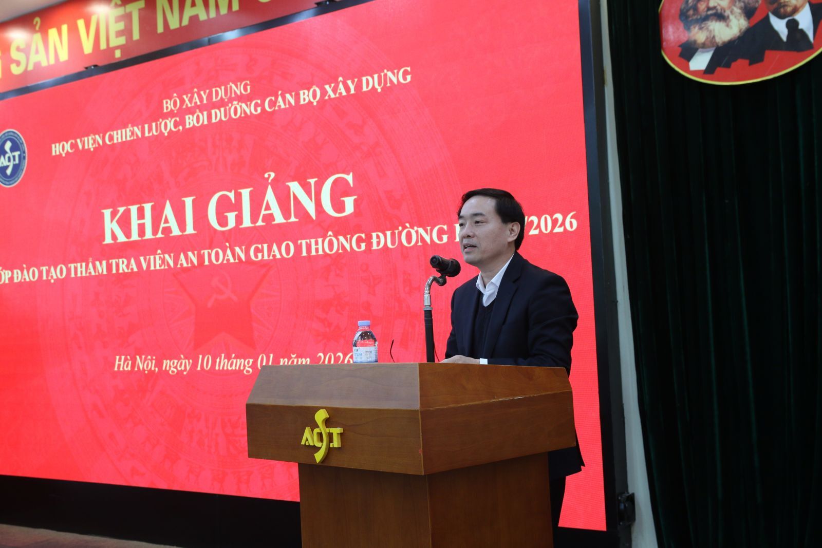 Phát biểu khai giảng khoá đào tạo, TS. Đỗ Văn Thuận - Phó Giám đốc Học viện đánh giá, Công tác thẩm định an toàn giao thông đường bộ (ATGTĐB) là nội dung quan trọng trong thực hiện đầu tư xây dựng, khai thác các dự án giao thông đường bộ và được quy định chặt chẽ trong Luật Đường bộ, Luật Trật tự ATGTĐB, các nghị định và văn bản hướng dẫn liên quan. Để thực hiện công tác này thì các tổ chức, cá nhân được giao nhiệm vụ phải có đủ điều kiện theo quy định. Đối với cá nhân thì phải có chứng chỉ Thẩm tra viên ATGTĐB. Vì vậy khoá đào tạo này không những giúp các học viên cập nhật, bổ sung kiến thức, kỹ năng chuyên ngành mà còn đảm bảo điều kiện, tiêu chuẩn để thực hiện công tác thẩm tra, thẩm định ATGTĐB theo quy định. TS. Đỗ Văn Thuận đề nghị các học viên chấp hành nghiêm túc nội quy, quy chế của khoá học, phát huy tinh thần học tập, tích cực trao đổi, tương tác với giảng viên những vướng mắc thực tế trong quá trình thực hiện nhiệm vụ. Về phía Học viện sẽ tạo điều kiện tốt nhất từ đội ngũ giảng viên cũng như cơ sở vật chất để đảm bảo khoá đào tạo được diễn ra với hiệu quả cao nhất.